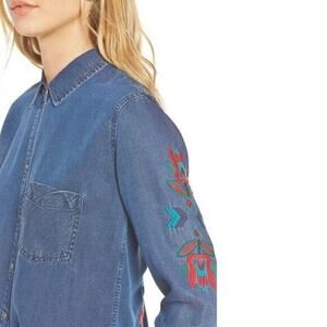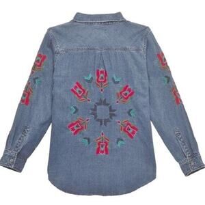 Rails Women's Ingrid Jalisco Embroidered Chambray Western Button-Down Shirt Sz S
