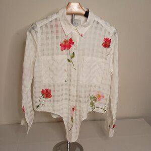 Features: Pretty Floral and check pattern, tie front, buttoned sleeve cuffs