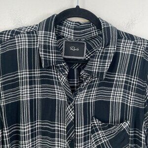 Rails Womens Medium Plaid Long Sleeve Button Up Shirt Black White Flannel Top