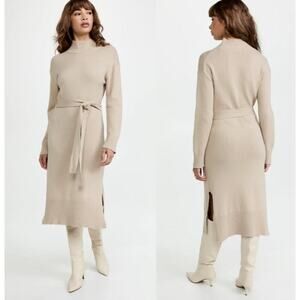 Rails Women's Mila Tie Waist Turtleneck Sweater Dress in Oatmeal size Large #13