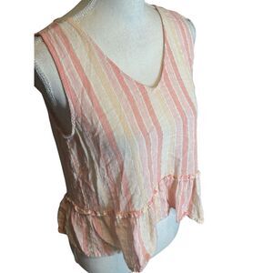 Rails Womens Mira Top Sz XS Juliette Stripe Linen Blend Tank Ruffle Hem Boho
