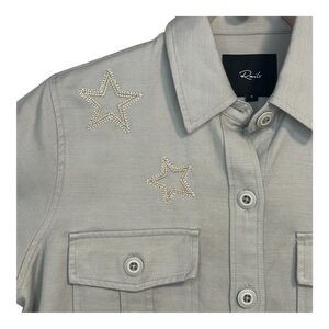 Rails Women's Natural Loren Star Embroidered Raw Hem Twill Shirt Jacket Sz: S