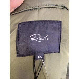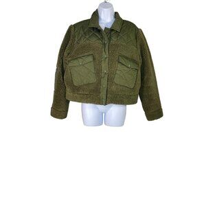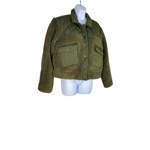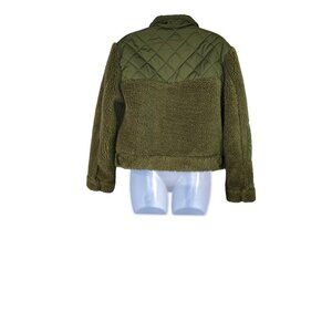 Rails Womens Peyton Mixed Media Quilted Fleece Jacket Olive Green Pockets Size M