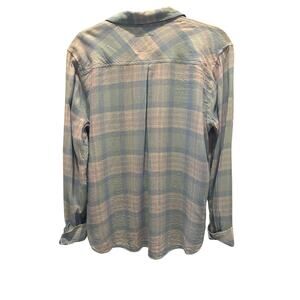 Rails Women’s Pink/Blue Charli Linen Blend Plaid Button Up LS Shirt Size L