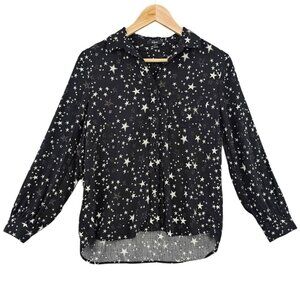 Rails Womens S Noemi Long Sleeve Button Up Starry Print Shirt in Black Galaxy