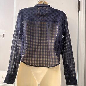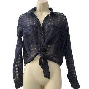 Rails Women’s Sheer Checkered Navy Button-Down Tie Front Shirt, Size XS