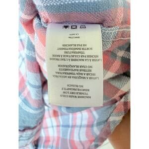 The Rails Women's Small Hunter Plaid Button Shirt in Gray, Pink, and White is a stylish and versatile addition to any woman's wardrobe. Made from lightweight rayon fabric with a flannel texture, this button-up shirt features a collared neckline and long sleeves, making it perfect for all seasons.