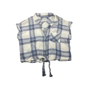 Rails Womens Sz L Amelie Tie Front Button Down Shirt in Lapis Coast Blue White