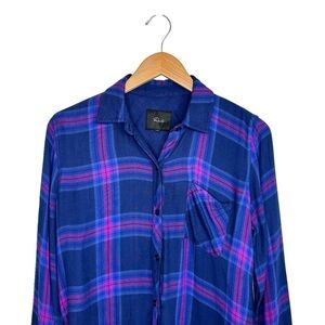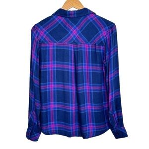 Rails Womens Taitum Plaid Button Up Long Sleeve Shirt Size XS Blue Ultra Violet