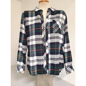 Rails Y2K Plaid Button Down Shirt SMALL Blue Green Flannel Barn Lounge Cowgirl