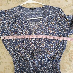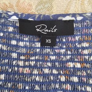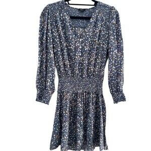 Rails Zana Dress XS Blue Ditsy Floral Mini Pullover V-Neck Smocked Lined