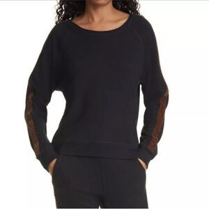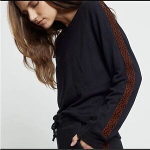 Rails black Theo sweatshirt with velvet animal print shoulder stripe XS
