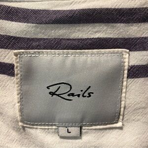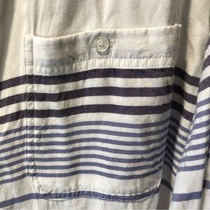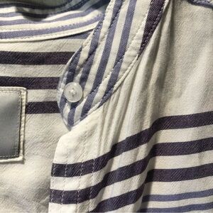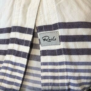 Rails blue and white horizontal stripe button down rayon blouse Chinese collar L