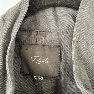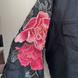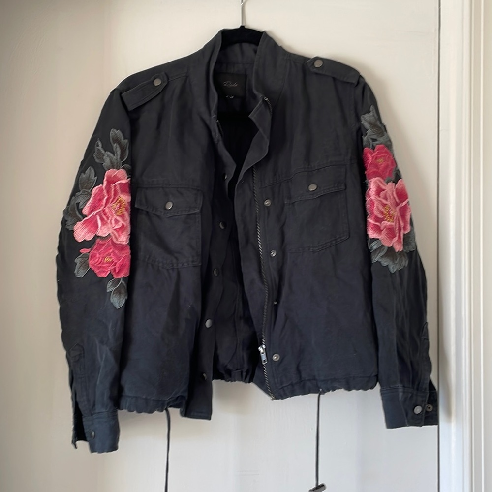 Rails twill bomber jacket with embroidery. Cargo pockets & drawstring on the hem. Zip front with snaps. Washed black in color (meant to look this way). Worn only 3 times.