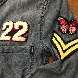 Rails denim chambray long sleeve button up the Carter patchwork in dark vintage blue