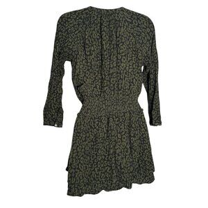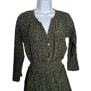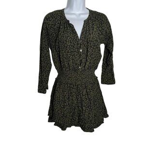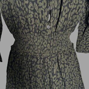 Rails Jasmine Olive Batik Cheetah Print Smocked Waist Mini Dress Button Front