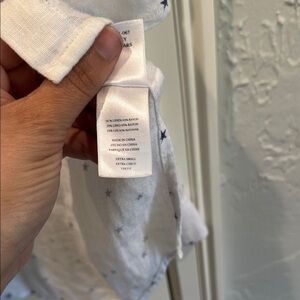 Chic white shirt with navy star details. Ideal for layering