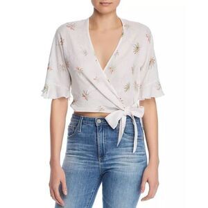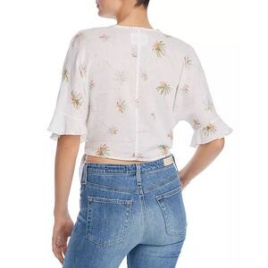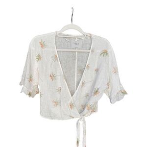 Rails linen blend white Athena Palm Print Cropped Wrap Top sz S