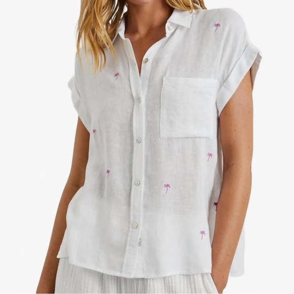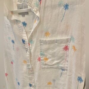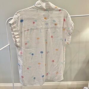 Excellent condition white button down short sleeve from Rails. The style is called Whitney neon palms. A linen and rayon blend with colorful palm trees scattered on the fabric. Size large, loose fitting. Measures 23 inches from armpit to armpit laying flat and 25 inches long.