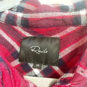 Rails black and red plaid flannel. Size XS. Classic flannel style. Super soft. Has some wear but overall good used condition