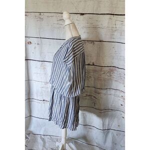 Linen blend cap sleeve button front tunic dress. Blue and white stripe. In good condition.