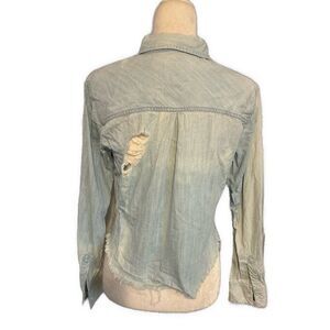 Rails Anthropologie Light Blue Denim Jean Pearl Long Sleeve Button Down Top S