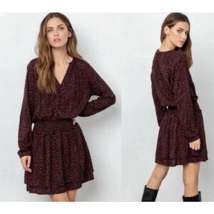 Rails Black Red Heart Print Long Sleeve Smocked Waist Jasmine Enamoured Mini Dress Medium