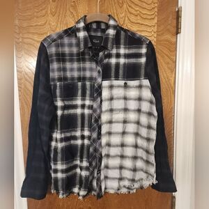 Soft brushed flannel in a mix of plaids adds a lively note to a classic shirt that goes further on the fun spectrum with a kicky fringed hem. 26 1/2" length, ( Size Medium ) Spread collar Long sleeves with button cuffs 60% rayon, 40% cotton Hand wash, line dry Imported