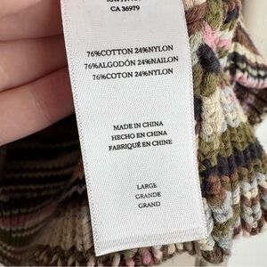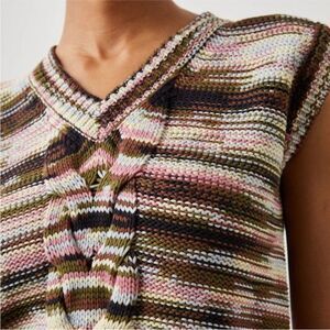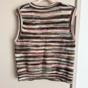 Rails sweater vest with pink, Olive green, baby blue and brown woven together.
