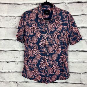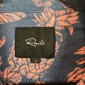 Keywords: Rails, Carson, button-up, multicolor, graphic print, linen, rayon, relaxed fit, casual, summer, men's shirt, breathable, short sleeve, collared, pre-owned.