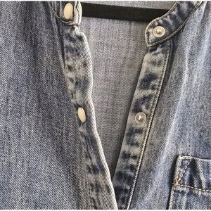 This Rails denim dress in women's size S is a versatile and stylish addition to any wardrobe. The mid blue color and flutter sleeves make it perfect for the bohemian or beach-themed look, while the snap button closure adds a trendy touch. Made from a blend of Tencel, rayon, and lyocell, this dress is comfortable and ideal for summer, fall, or spring occasions like travel, parties, or casual outings. With its A-line silhouette and shift style, this dress combines comfort with a flattering fit for a chic and effortless look.