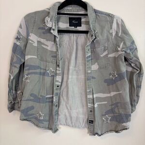 Great pre-owned condition Rails Girl's Green Camo with Star Print Button Front Shirt Size 14