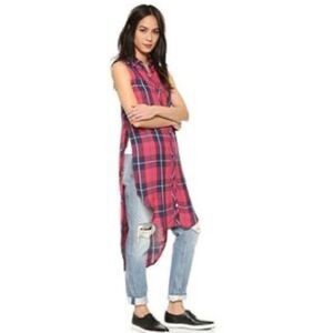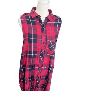 Rails High Low Plaid Button Down Sleeveless Top Size Medium