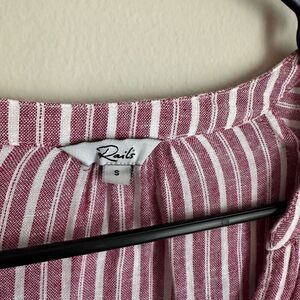Rails Jasmine Lucia Stripe Dress Long Sleeve Red Linen Blend size Small