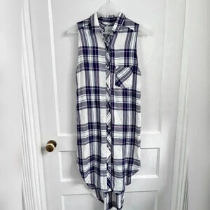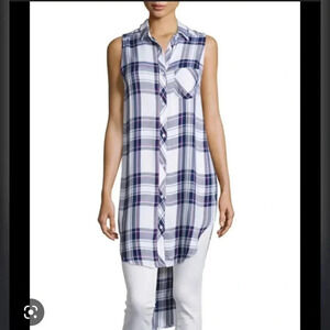 Rails Jordyn Plaid Sleeveless High-Low Tunic in White/Navy/Orchid NEW