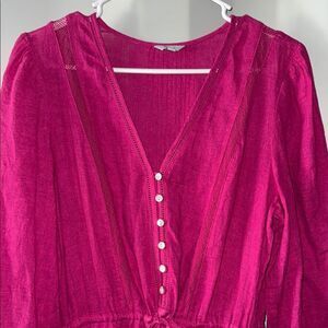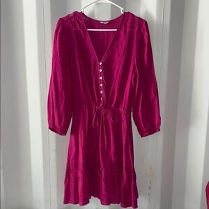 This elegant pink dress features a flattering button-down design with a drawstring waist for a perfect fit. Ideal for any occasion, it combines style and comfort effortlessly.