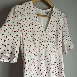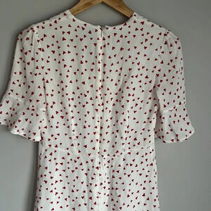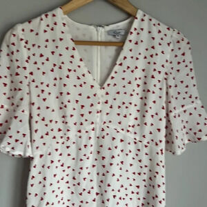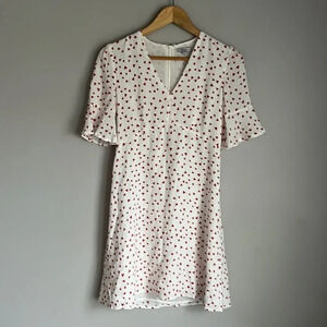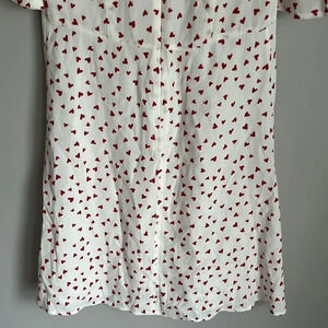 Rails Meline Mini Dress in Smitten- Charming White with Red Hearts print ; XS; Dress 100% Rayon; Lined; Back Zipper; Dainty Puff Sleeve