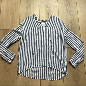 Rails Nina Rio Stripe Blouse Long Sleeve Linen Metallic Striped Shirt Medium