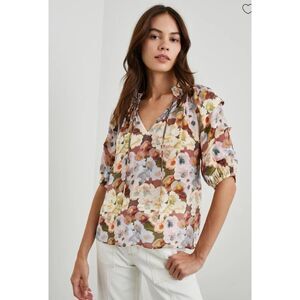 Rails Paris Painted Fall Floral V-Neck Blouse Puff Sleeve Lace Tie V-neck Size S
