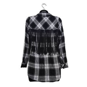 Rails Plaid Western Button Down Size Small Fringe Top Shirt Black White
