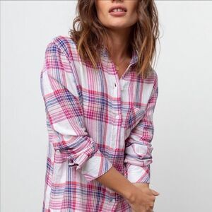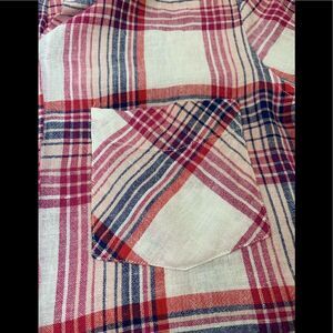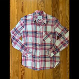 Worn once. Charli white peach fuchsia plaid button down. Size XS