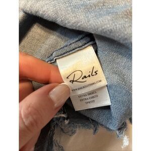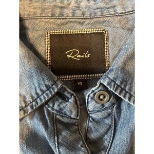 Rails Solid Blue Denim Jean Print Long Sleeve Button Down Top Xs