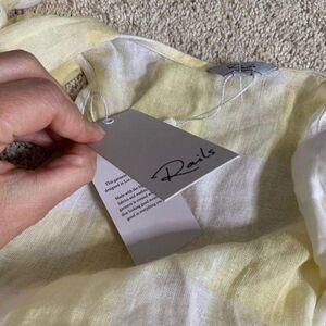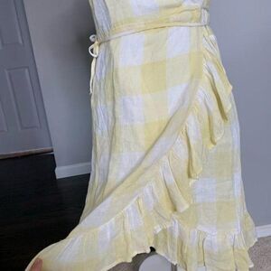 Gorgeous summer dress by rails. In style limoncello check. Features true wrap style and great ruffle details. Lightweight and lined on the bottom. Lying flat armpit to armpit approx 16” across and top of shoulder to bottom hem approx 34”. Keep in mind that measurements can be a little adjustable with this dress (ie bust) due to wrap design. NWT!
