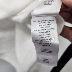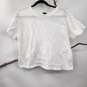 white tshirt with scalloped trim eyelet flutter sleeve. Gently preloved condition