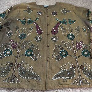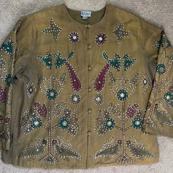 Raiment Fashions Jacket Womens Large Brown Sequined Patchwork Art To Wear Artsy