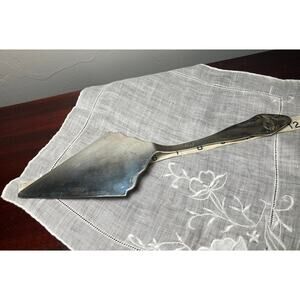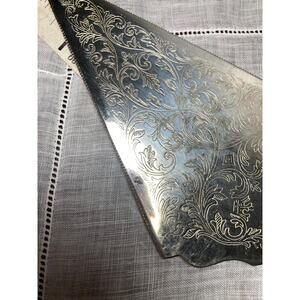 Vintage silver plated pie cake server 12 inches long with pattern on both sides of handle. Please see photos for more details. Has a couple of small spots (see photos)