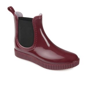 Ankle style rain boot, pull on tab and side stretch, comfort foam footbed. Only worn once!