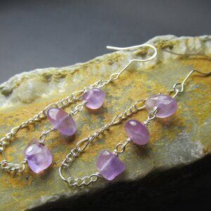 Rain Chain Amethyst Earrings, Pierced Dangle Earrings