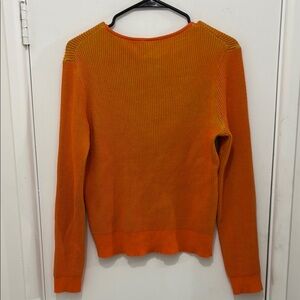 Brighten your wardrobe with this vibrant orange button-up sweater. Perfect for layering, this sweater adds a pop of color to any outfit.