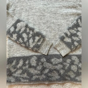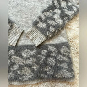 Rain + Rose Sweater Gray with faux leopard fur on bottom and sleeves size small